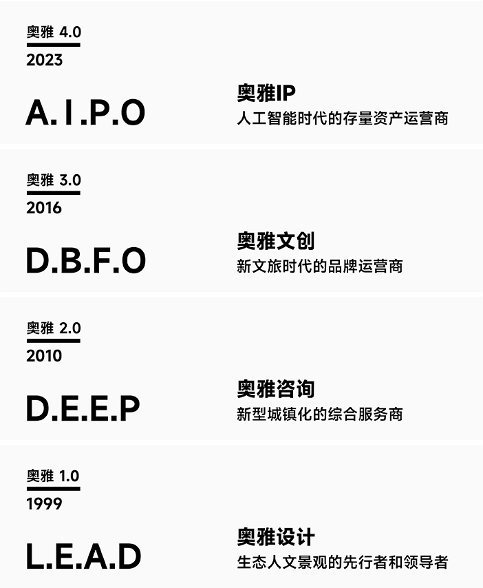 經(jīng)過多年的戰(zhàn)略布局與發(fā)展,在李方悅女士的推動下,奧雅股份從一家設(shè)計(jì)企業(yè)成功轉(zhuǎn)型成為新銳的輕資產(chǎn)文旅開發(fā)運(yùn)營企業(yè)。奧雅以“創(chuàng)造更美好的人居環(huán)境”“讓空間賦予生命”為使命,以雙輪驅(qū)動+雙引擎為發(fā)展格局,即創(chuàng)意設(shè)計(jì)+親子文旅雙輪驅(qū)動、AIGC+IP雙引擎;經(jīng)營業(yè)務(wù)范圍涵蓋創(chuàng)意設(shè)計(jì)、親子文旅、數(shù)字科技等領(lǐng)域,為城市更新、鄉(xiāng)村振興、文化古城等不同場景提供全程化咨詢與綜合運(yùn)營服務(wù)。在實(shí)現(xiàn)企業(yè)價值和理想的同時,解決當(dāng)代中國的實(shí)際問題與需求,創(chuàng)造具有地域特色、人性化和充滿活力的新舊城市空間和綜合文化旅游項(xiàng)目。